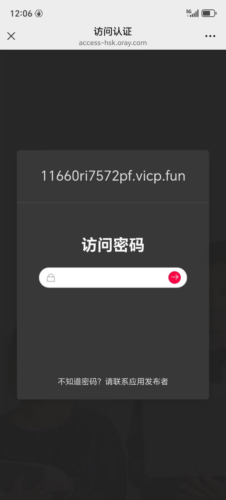 开启隧道口令后,使用PC或手机端访问隧道时会提示输入口令。